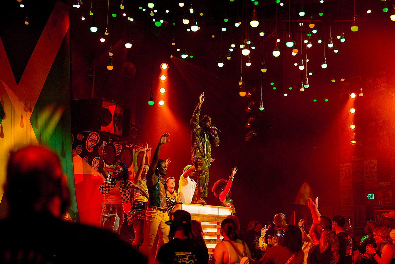 Audiences journey from a gallery of Marley’s iconic album art into spaces including a lively Dance Hall, the streets of Trench Town, a moving Cathedral scene and a 3-D finale – each combining live cast, music, lighting and vivid projection to honour Marley’s cultural legacy.
